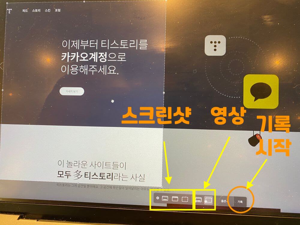 2. 하단에 스크린샷 캡처, 동영상 캡처를 선택할 수 있는 창이 나옵니다.